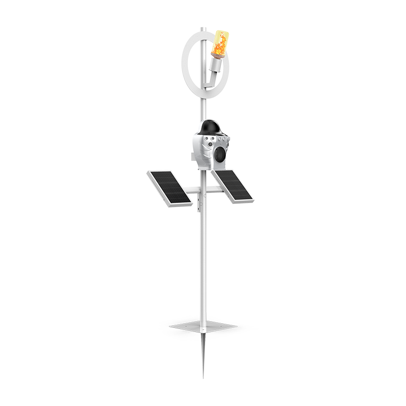 6、定制化解决方案:灵活配置:用户可自定义音频内容、播放模式或灯光闪烁模式(如爆闪灯序列)。支持选配组件,如火焰灯、电子围栏、脉冲电网或高清摄像头,适应不同威胁等级。