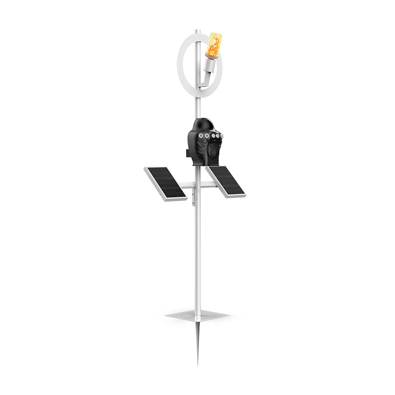 野生动物智能监测防御终端集成了先进的现代传感技术和超声波、集束强光、高仿声效、仿真火焰、神秘光圈等震慑和驱离手段,形成了一体化的监测和防御设备,该设备能有效防止野生动物进入特定区域,如农田、果园、牧场等,同时确保野生动物的安全以维护生态平衡与财产安全。设备通过自动感应动物活动并采用智能战术大脑自动启动对应的震慑措施,以保护动植物资源免受侵害。同时,该设备提供了便捷的远程监控与管理功能,用户可通过移动终端或计算机实时监控现场状况,并及时接收预警信息,确保防护工作的高效与及时。