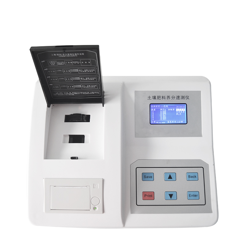配套齐全:速测仪集药、器、仪为一体,携带方便,相当于一个小型实验室,便于现场测试,流动服务。成品药剂开瓶即用,保证了测试速度快捷。成本低廉,测一个养分(N、P、K)成本只需3元。