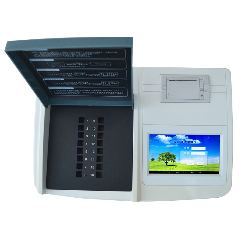 9、同时测量16个样品,可同时测量也可单独测量,主机内置微型打印机,可以将农残数据汇总上报到农情监管信息系统中。