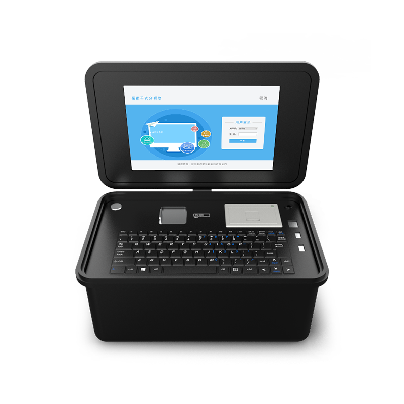 便携食品安全干式分析仪(即食品安全干式试纸便携式分析仪)是一种新型食品安全快速分析仪。该仪器系多功能整合,便携式、集成化设计,结合渗滤化学显色、生物显色两大核心技术,可现场检测食品中大部分兽药残留、农药残留、非法添加物、生物毒素及致病菌等指标。
