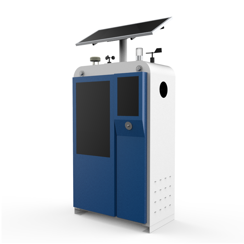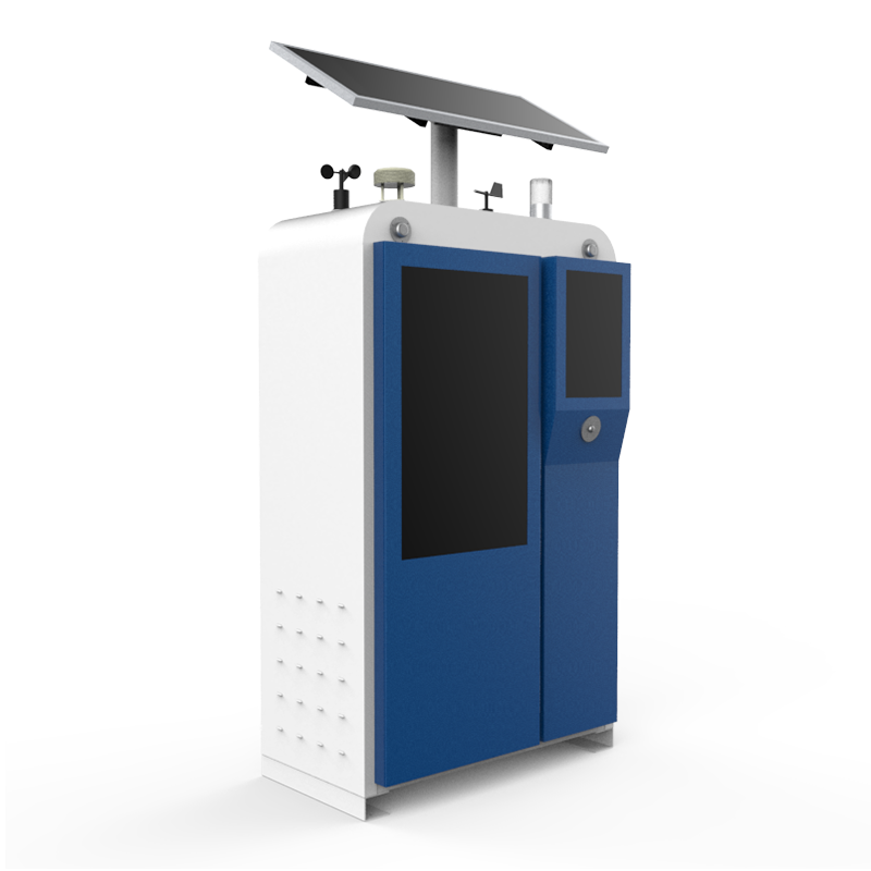 2、环境监测:标配空气温湿度传感器、风速风向传感器,可实时监测现场环境。并可通过一体机的LED显示屏进行实时无间断显示。